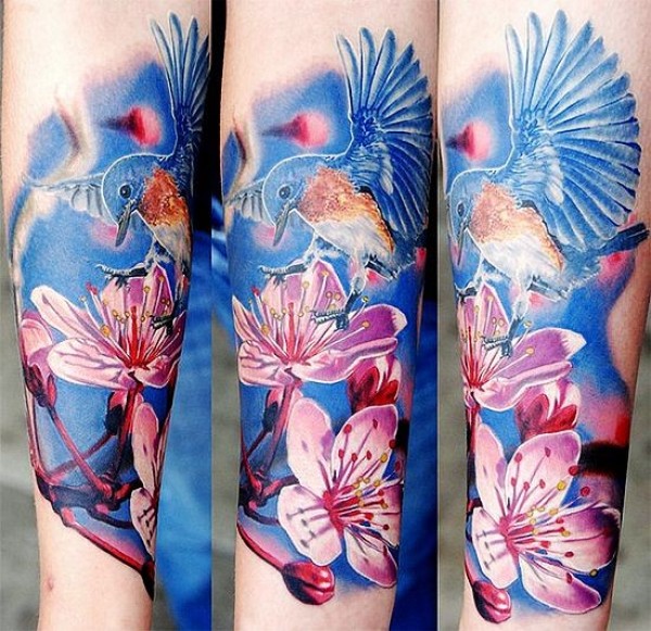 小鸟和桃花的纹身_植物纹身图案大全_纹身图吧