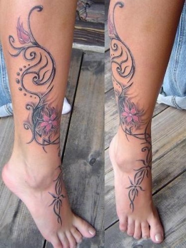女孩子腿部花藤纹身_植物纹身图案大全_纹身图吧