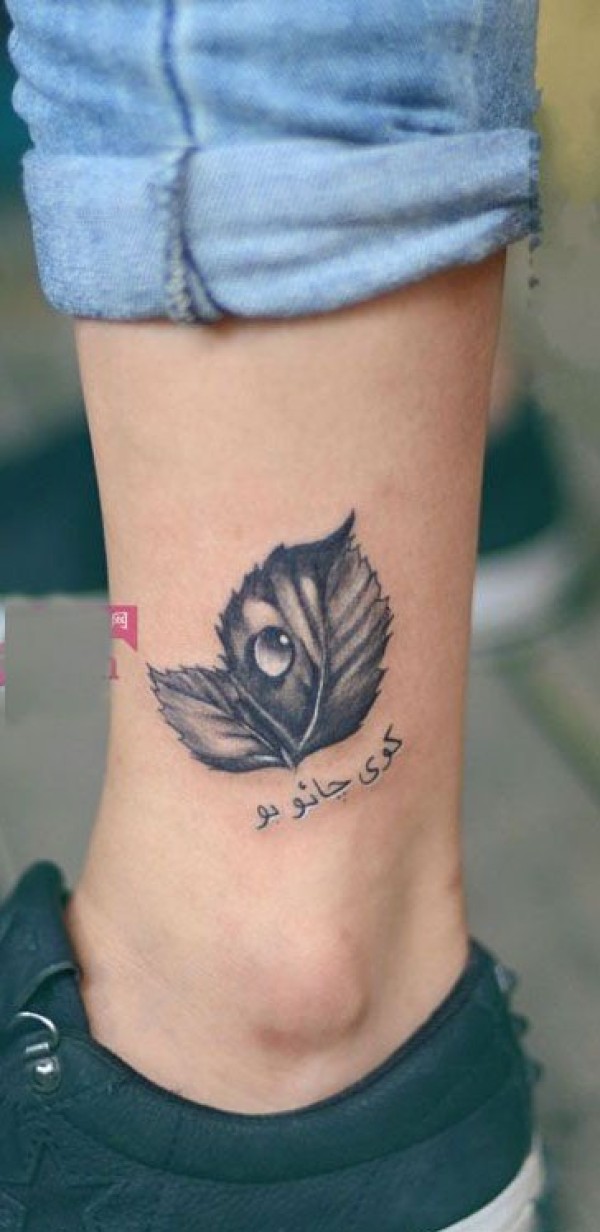 脚踝处漂亮的树叶纹身_植物纹身图案大全_纹身图吧