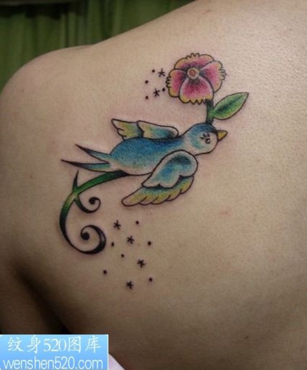 小鸟花小星星纹身图案图案_植物纹身图案大全_纹身图吧