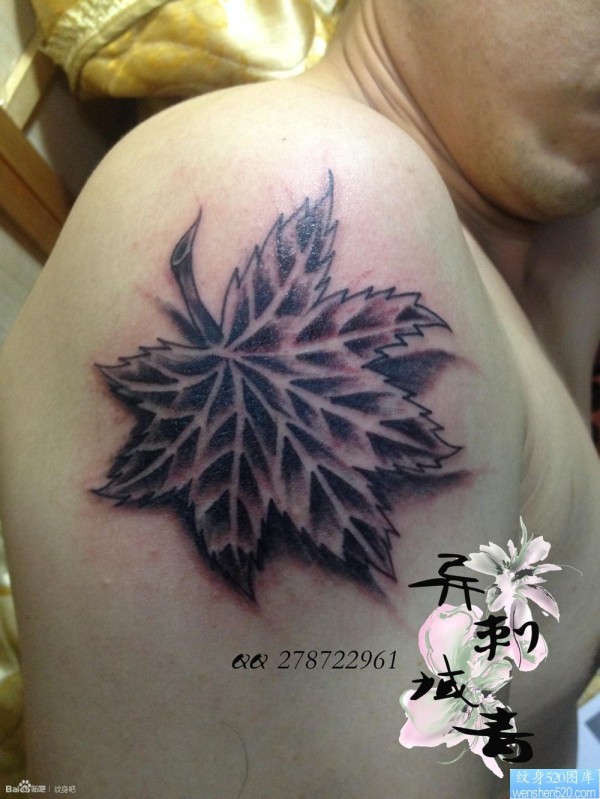 男生胳膊个性树叶纹身图片_植物纹身图案大全_纹身图吧