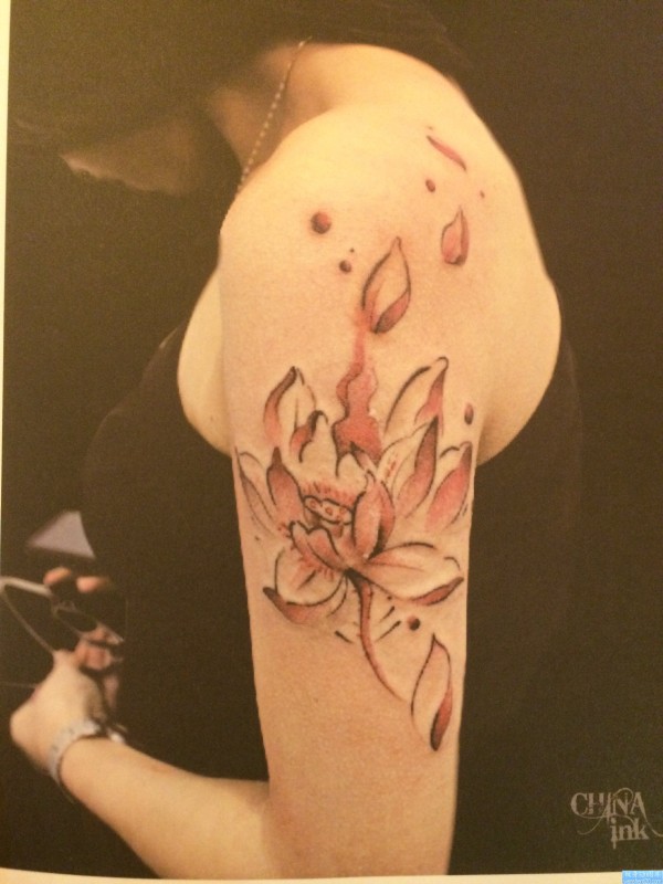 一幅女人胳膊彩色莲花纹身图片由纹身520图库推_植物纹身图案大全_纹身图吧