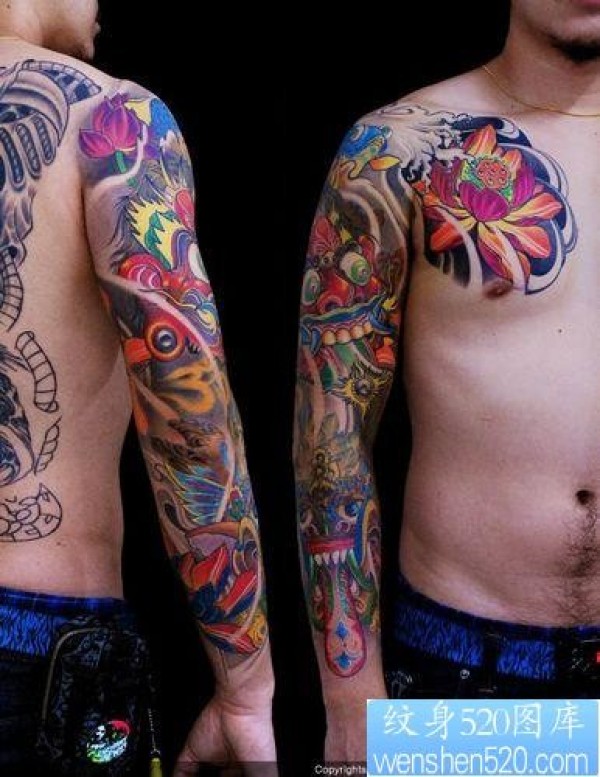 半胛纹身图片彩色半胛嘎巴拉莲花纹身图片纹_植物纹身图案大全_纹身图吧