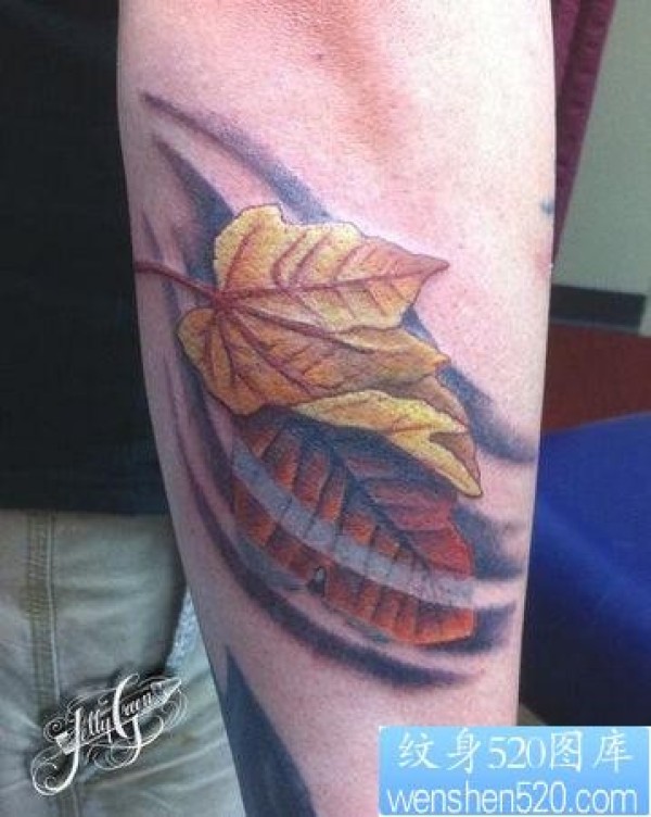 手臂彩色树叶枫叶纹身图片_植物纹身图案大全_纹身图吧