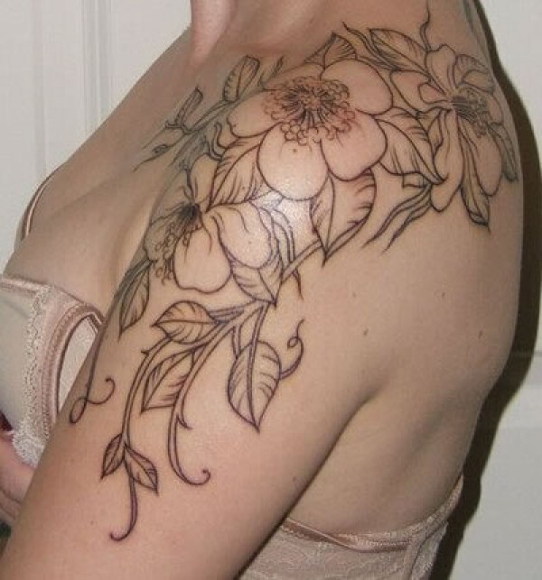 包住肩膀的素色花藤纹身作品_植物纹身图案大全_纹身图吧