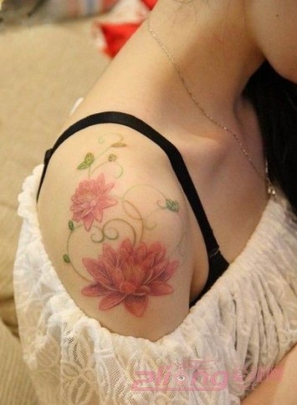 肩膀上漂亮与邪恶的花藤纹身图案对比淑女香肩_植物纹身图案大全_纹身图吧