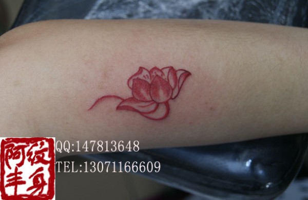 红色荷花小图案纹身小巧玲珑的纹身也极具美感_植物纹身图案大全_纹身图吧