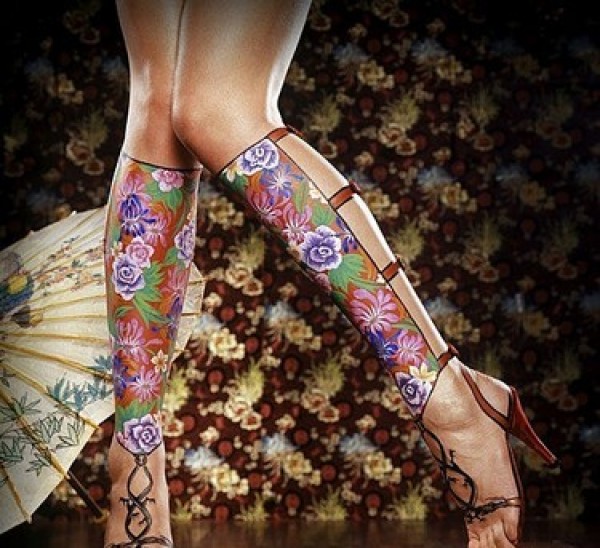 彩色花朵纹身,这纹身真像漂亮的彩色丝袜_植物纹身图案大全_纹身图吧
