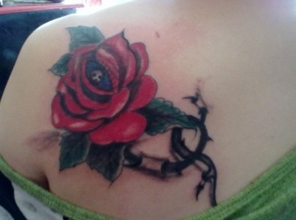 后肩部分的花朵纹身,比较适合吊带装扮_植物纹身图案大全_纹身图吧