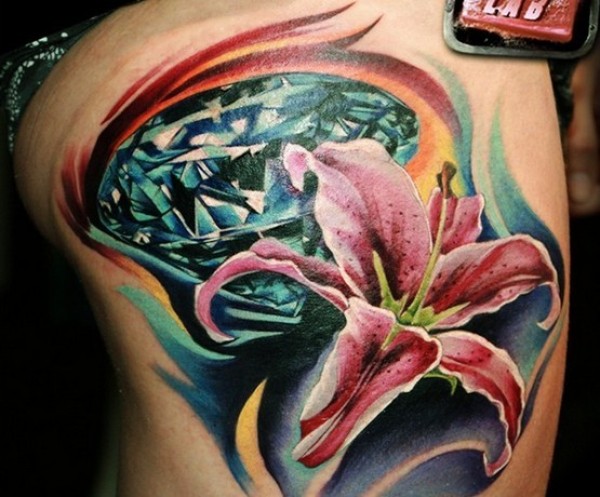 可爱的钻石加彼岸花纹身,算是精品了_植物纹身图案大全_纹身图吧