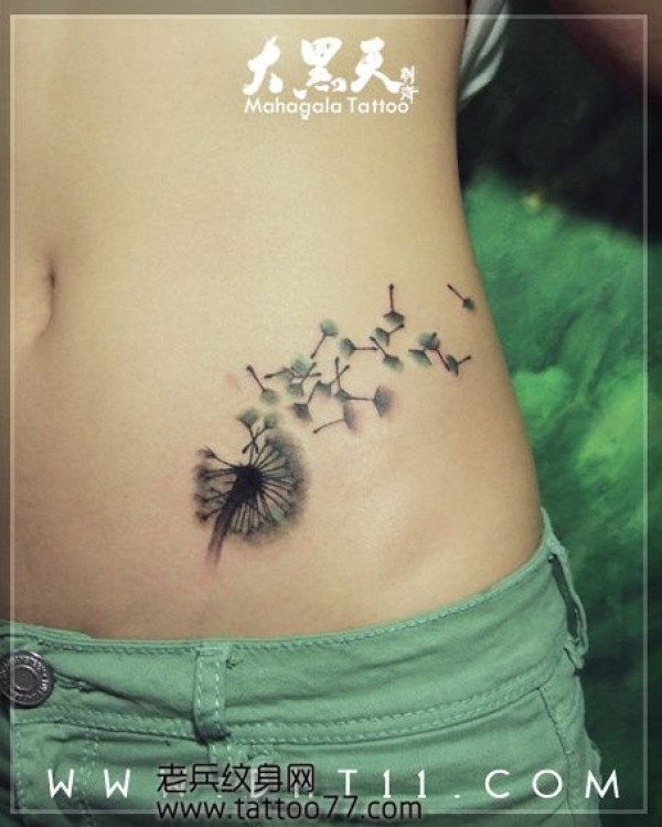 女孩子腹部好看的蒲公英纹身图案_植物纹身图案大全_纹身图吧
