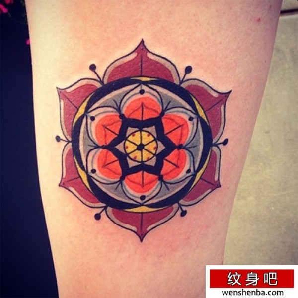 腿部彩色花朵纹身图案_植物纹身图案大全_纹身图吧