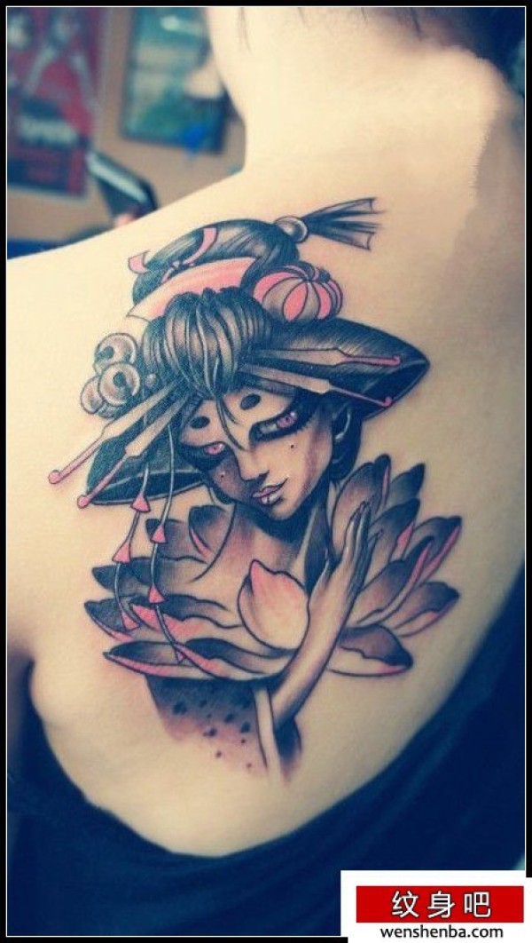 时尚艺妓莲花纹身图案_植物纹身图案大全_纹身图吧