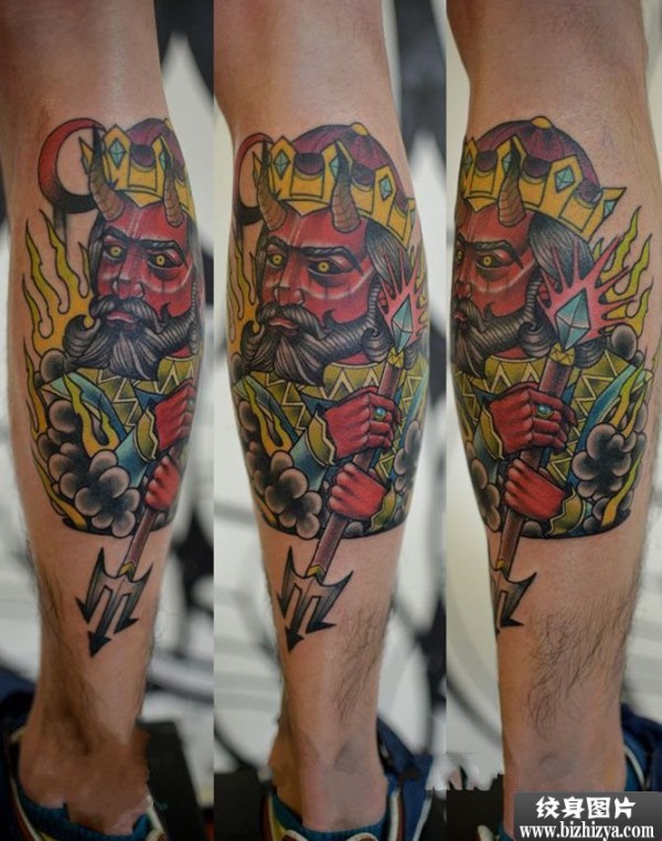 创意牛魔王皇冠花腿纹身图案图片_植物纹身图案大全_纹身图吧