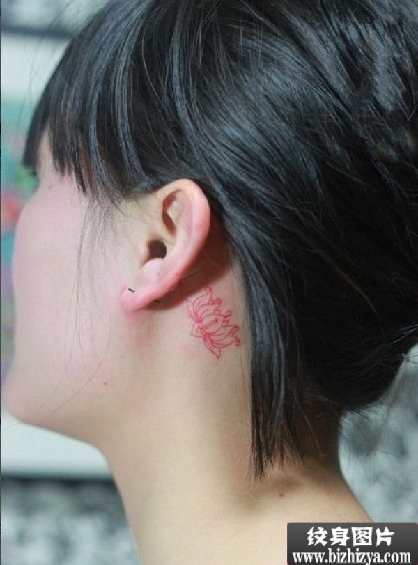 耳后可爱小莲花纹身图案图片_植物纹身图案大全_纹身图吧
