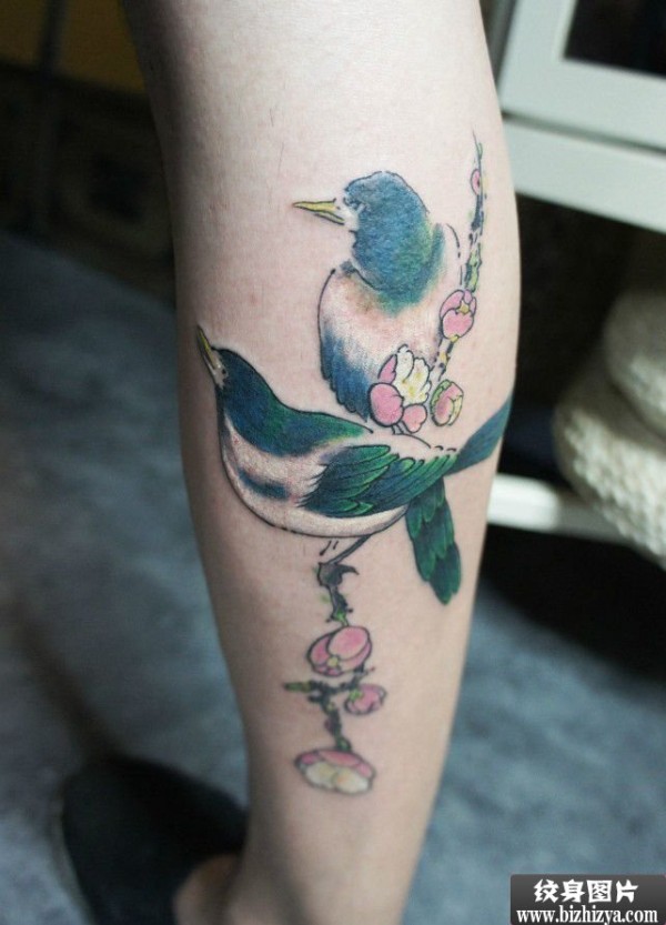 中国风喜鹊和梅花水墨纹身图案图片_植物纹身图案大全_纹身图吧