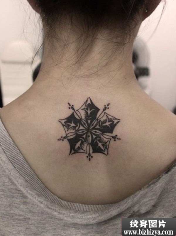 创意雪花变奏曲颈部纹身图案图片_植物纹身图案大全_纹身图吧