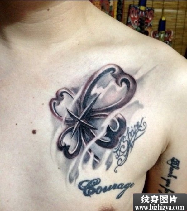 胸口水墨风四叶草纹身图案图片_植物纹身图案大全_纹身图吧