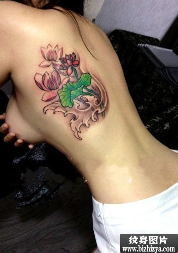 性感美背彩绘荷花刺青图案图案图片_植物纹身图案大全_纹身图吧