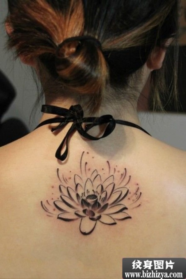 背上简约素莲花刺青图案图片_植物纹身图案大全_纹身图吧