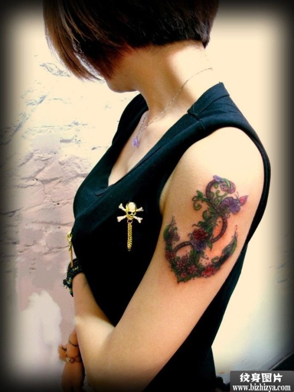 花藤船锚大臂创意刺青图案图片_植物纹身图案大全_纹身图吧