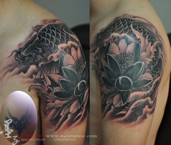 遮盖纹身 鱼 荷花_植物纹身图案大全_纹身图吧