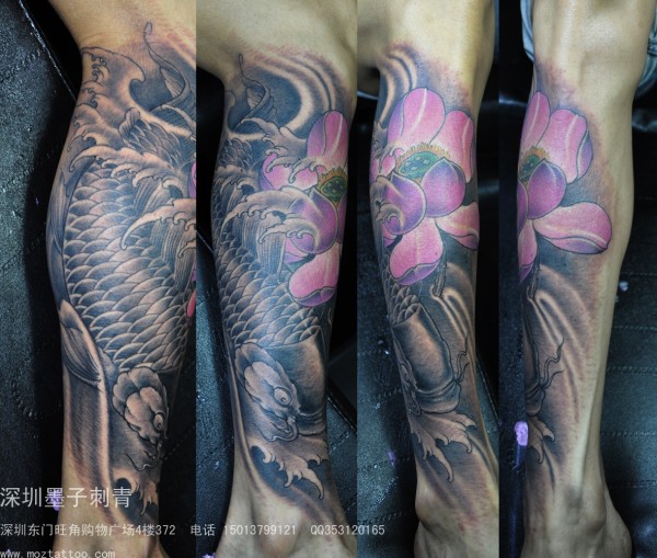 包腿鱼荷花纹身_植物纹身图案大全_纹身图吧