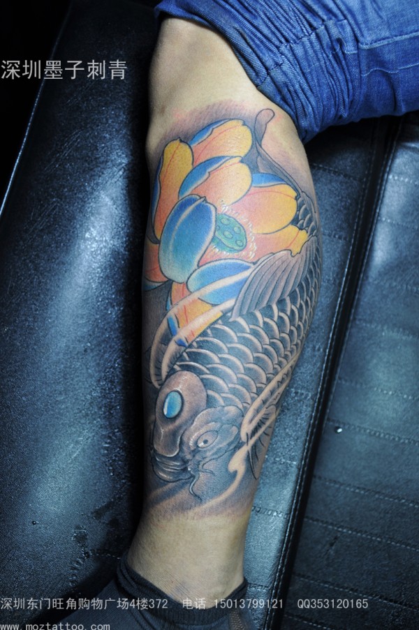 包退 鱼 荷花_植物纹身图案大全_纹身图吧