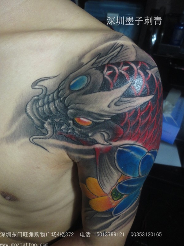 遮盖 鳌鱼 荷花_植物纹身图案大全_纹身图吧