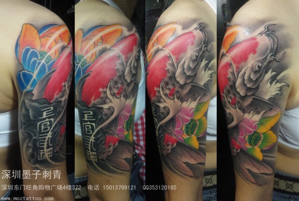 鱼 荷花_植物纹身图案大全_纹身图吧