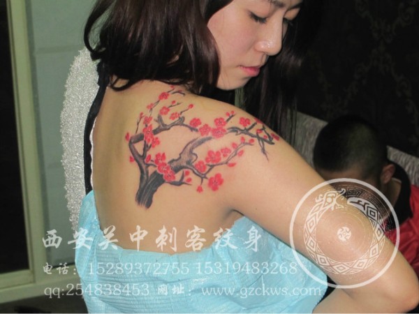 国画风格梅花纹身西安关中刺客纹身_植物纹身图案大全_纹身图吧