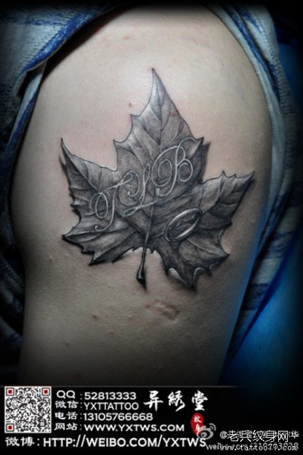 手臂经典的一款树叶与戒指纹身图案_植物纹身图案大全_纹身图吧