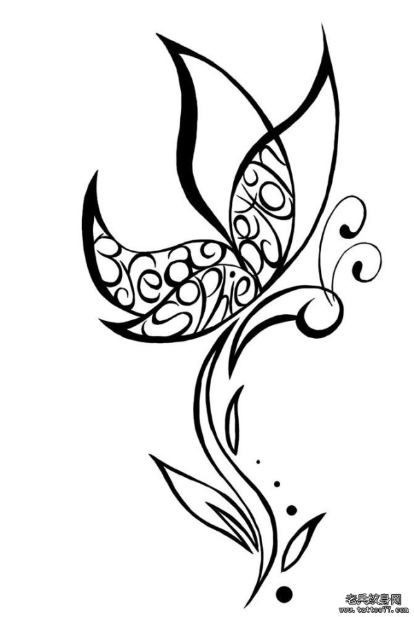 推荐一款蝶恋花纹身图案_植物纹身图案大全_纹身图吧