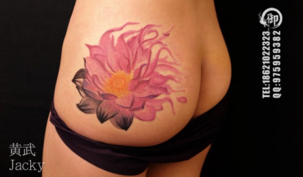 美女臀部潮流漂亮的水墨莲花纹身图案_植物纹身图案大全_纹身图吧