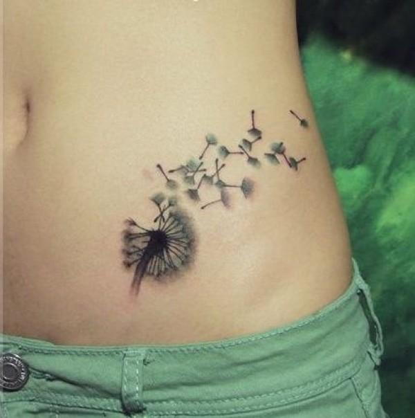 女孩子腹部流行的蒲公英纹身图案_植物纹身图案大全_纹身图吧