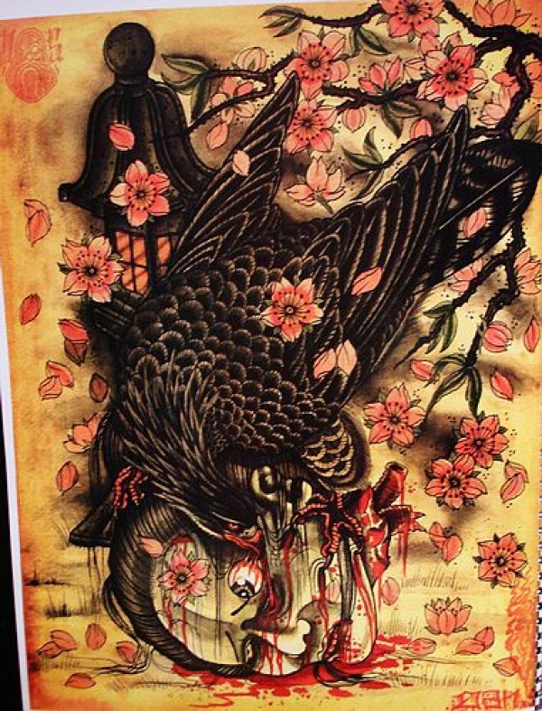 湖北宜昌文身店老鹰樱花纹身图案图片大全_植物纹身图案大全_纹身图吧