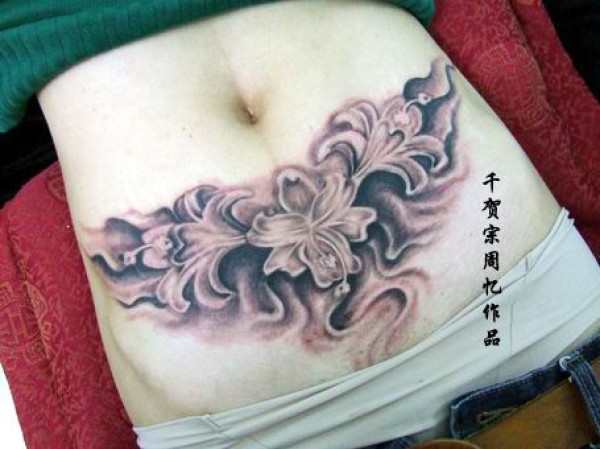 腹部纹身图案大全一款适合腹部遮盖的百合纹_植物纹身图案大全_纹身图吧
