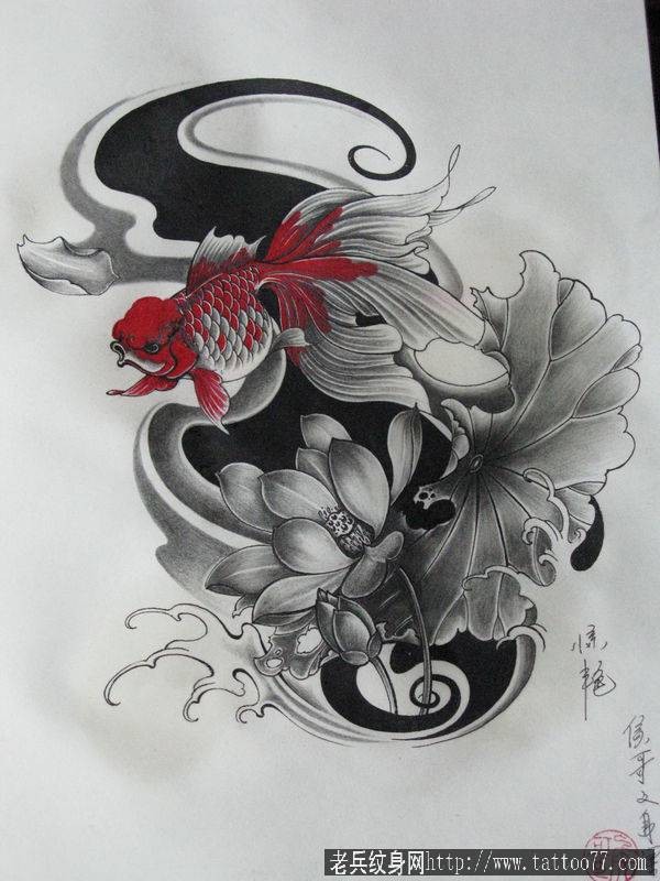 湖北黄石纹身店莲花金鱼纹身图案图片大全_植物纹身图案大全_纹身图吧
