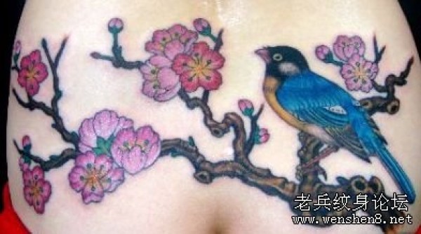 经典时尚梅花喜鹊纹身图案_植物纹身图案大全_纹身图吧