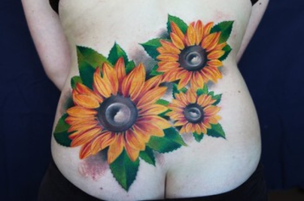 一款彩色向日葵纹身_植物纹身图案大全_纹身图吧