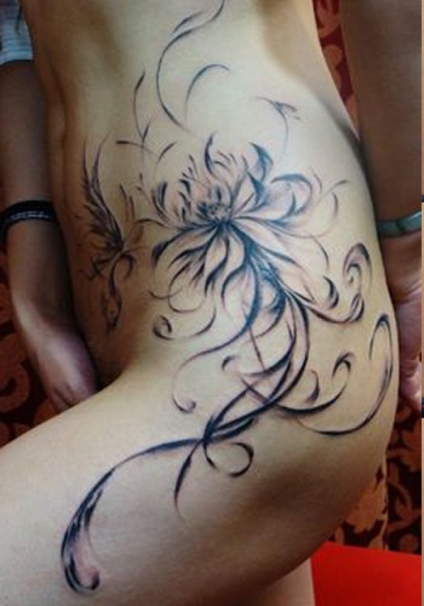 臀部莲花藤蔓纹身_植物纹身图案大全_纹身图吧