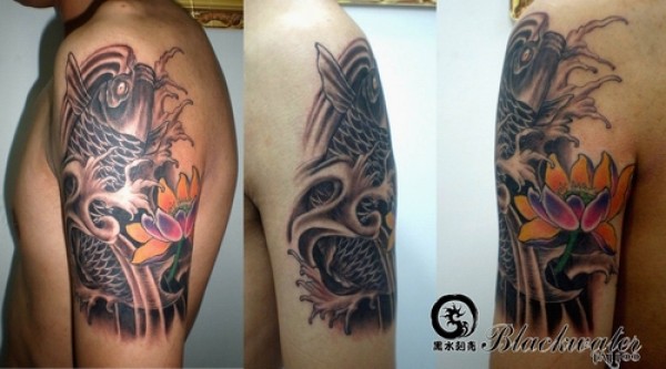 鱼,莲花_植物纹身图案大全_纹身图吧