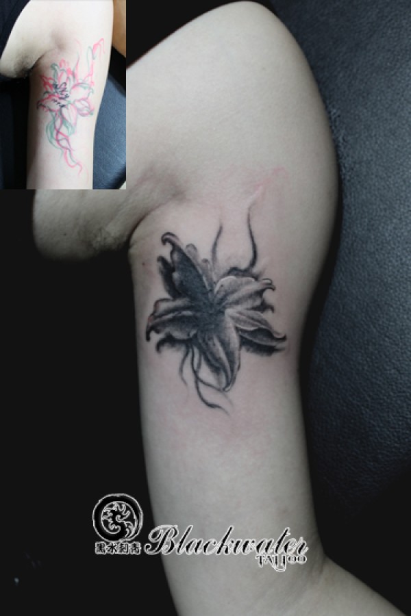 花遮字_植物纹身图案大全_纹身图吧