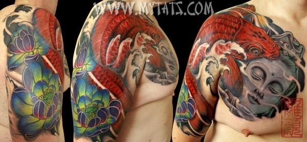 莲花鱼半胛_植物纹身图案大全_纹身图吧