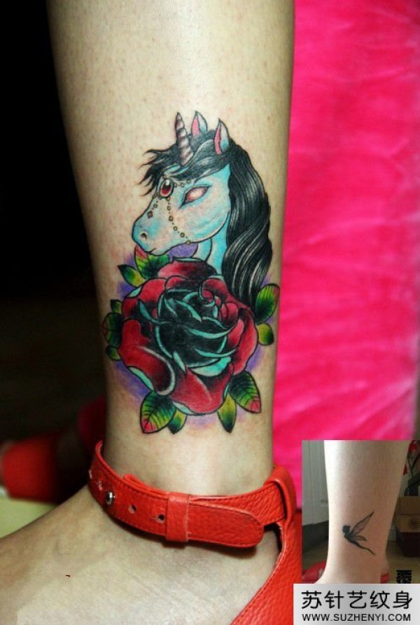 钻石独角兽花纹身_植物纹身图案大全_纹身图吧