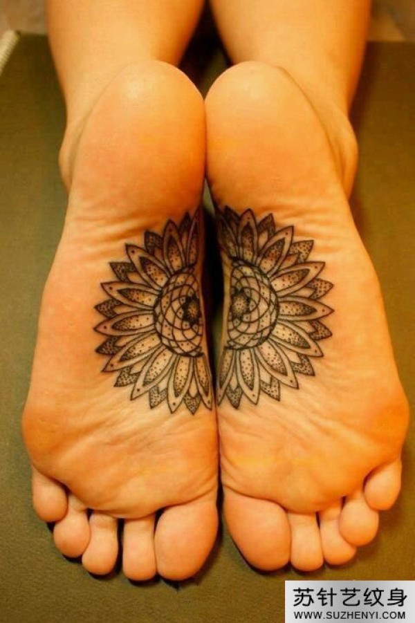 脚底向日葵个性纹身_植物纹身图案大全_纹身图吧