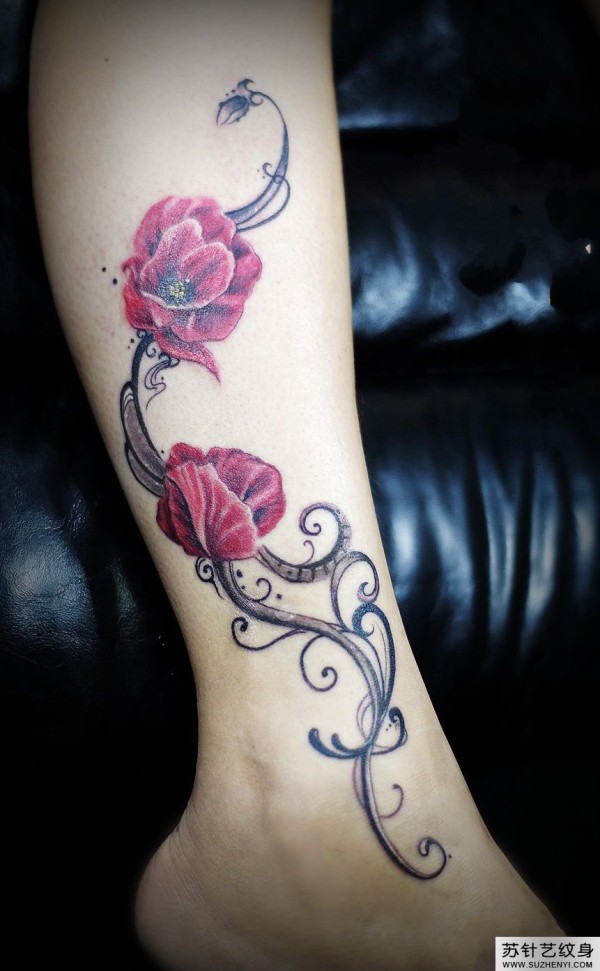 花藤花朵小腿纹身_植物纹身图案大全_纹身图吧