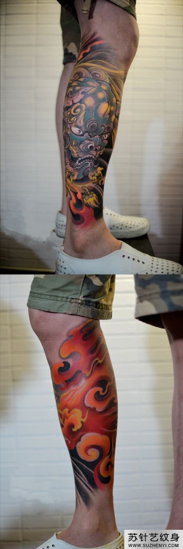 花腿小唐狮子纹身_植物纹身图案大全_纹身图吧
