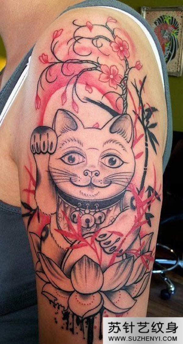手部花藤招财猫纹身_植物纹身图案大全_纹身图吧