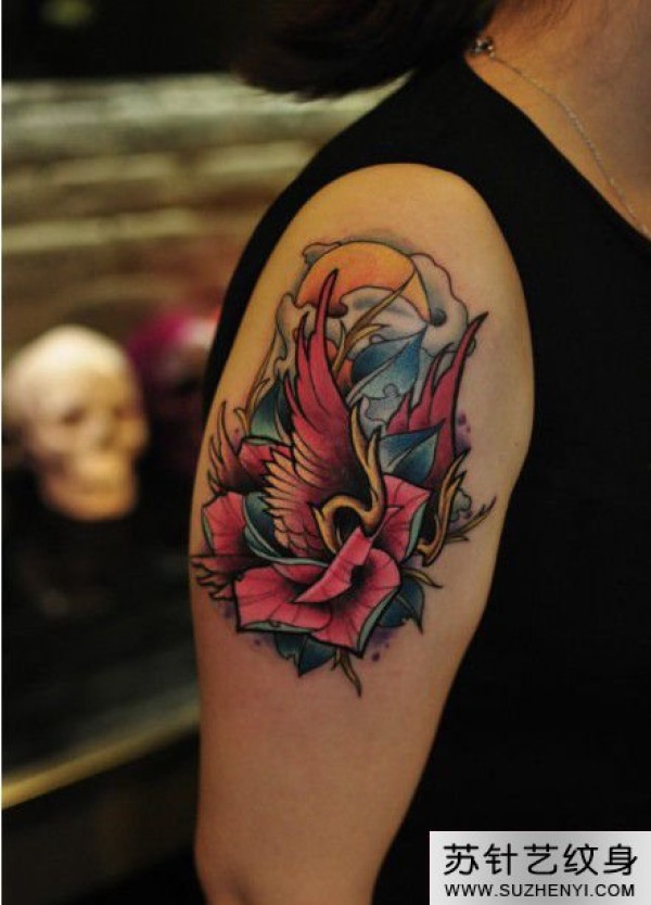 花胸左轮*纹身_植物纹身图案大全_纹身图吧